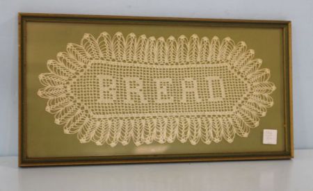 Crochet Framed Piece "Bread" 19" w., 9 1/2" h. Crochet Framed Piece "Bread" 19" w., 9 1/2" h.