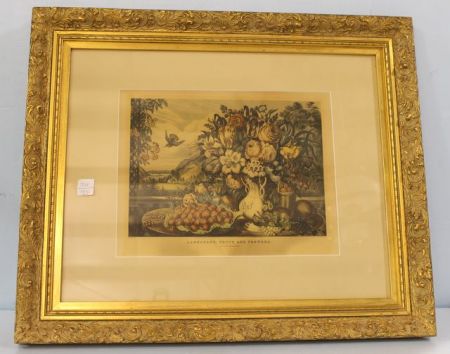 21262 Print of Landscape, Fruit, Flowers 24" w., 20" h.