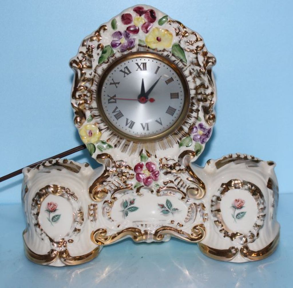 21330 Electric Porcelain Victorian Style Mantle Clock 10" w., 10" h.
