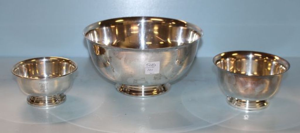 Three Silverplate Bowls 9" , 5 1/2" dia. Three Silverplate Bowls 9" , 5 1/2" dia.