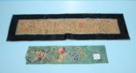 Silk Panel and Hand Stitched Piece Panel on silk with black border, 6 1/2" w., 22" h. ; also small piece of silk Silk Panel and Hand Stitched Piece Panel on silk with black border, 6 1/2" w., 22" h. ; also small piece of silk