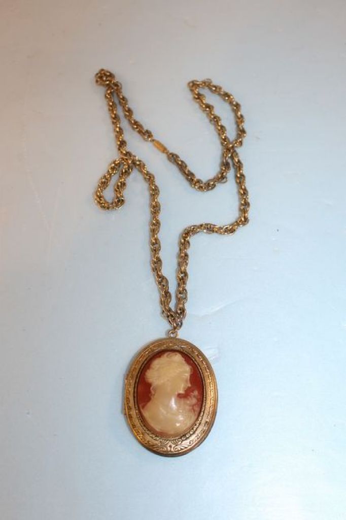 21722 Costume Jewelry Cameo Necklace/ Locket