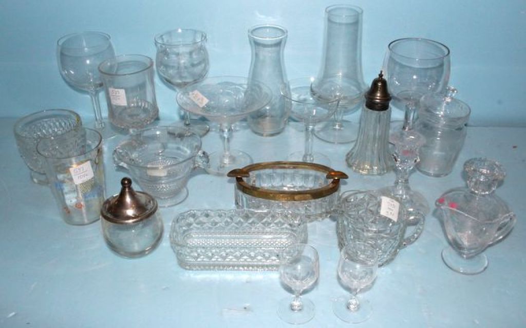 21735 Large Group of Glassware Includes sugar shakers, glasses, vases