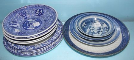 21763 Approximately Twelve Blue and White Porcelain Dishes
