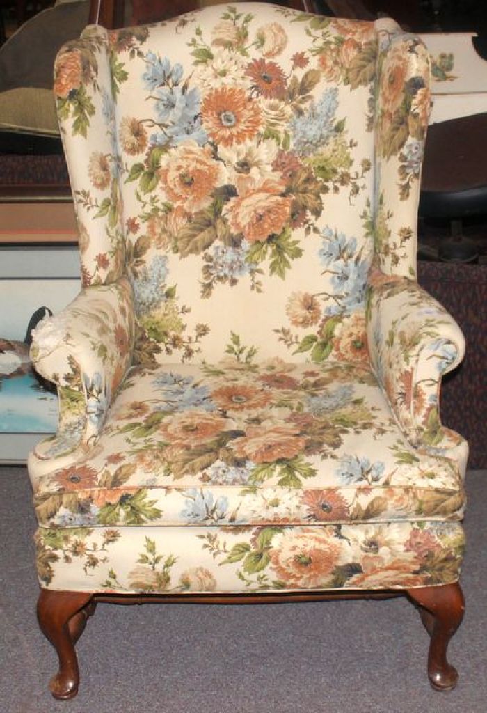 21768 Queen Anne Upholstered Wing Back Arm Chair 43" h.