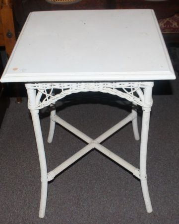 21769 Wood Top with Wicker Base Lamp Table 22" sq., 30" h.