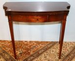 Hepplewhite Style Card Table Mahogany Hepplewhite style card table with inlay urns in center apron and legs; 35" w., 18" d., 31" h. Hepplewhite Style Card Table Mahogany Hepplewhite style card table with inlay urns in center apron and legs; 35" w., 18" d., 31" h.