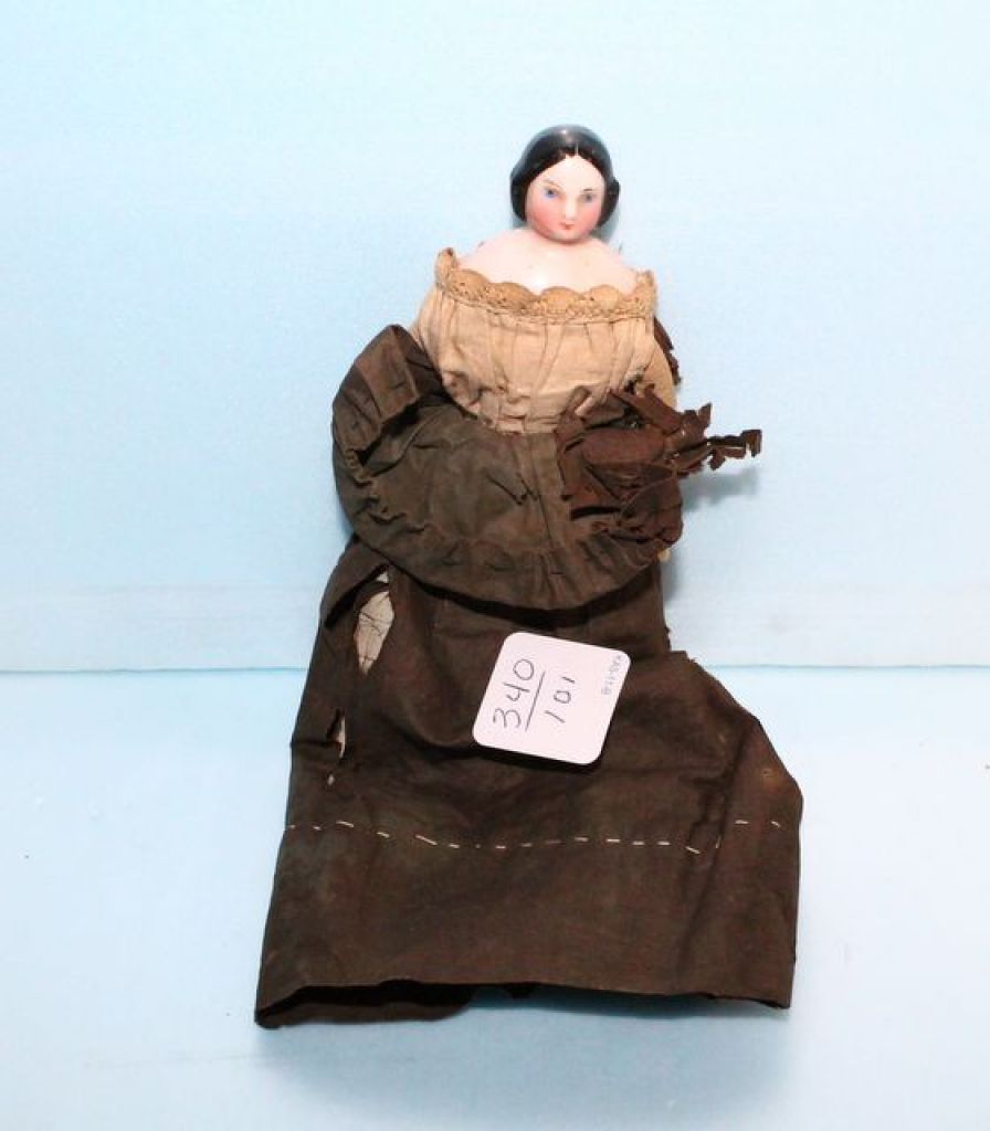 21828 19th Century China Head Doll Missing a leg; 7 1/2" h.