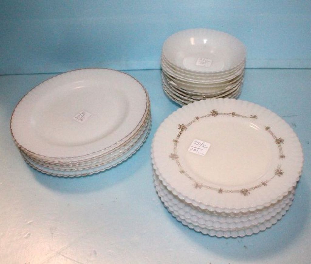 21839 Set of Eight Opalescent Plates, Thirteen Plates & Eleven Bowls 9"; 8"; 5 1/2"