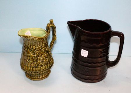 21852 Two Pottery Pitchers 8" h.; 8 1/2" h.