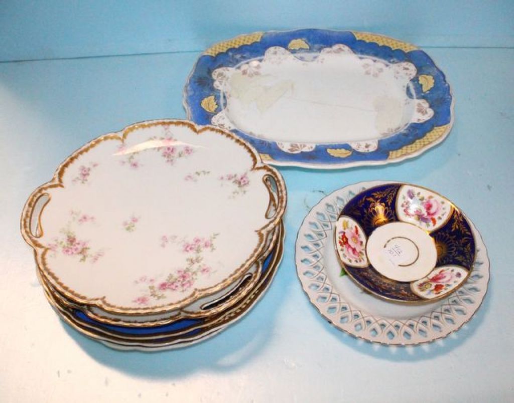 21873 Various Porcelain Hand painted Plates, One Saucer & Platter Platter is cracked