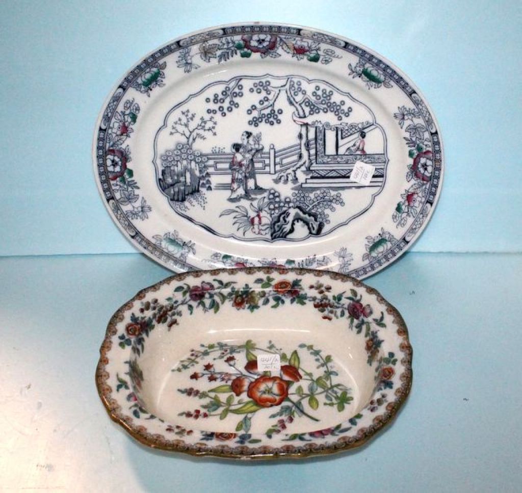 21902 Large Stoneware Bowl & Platter Bowl 13" w.; Platter 16 1/2"