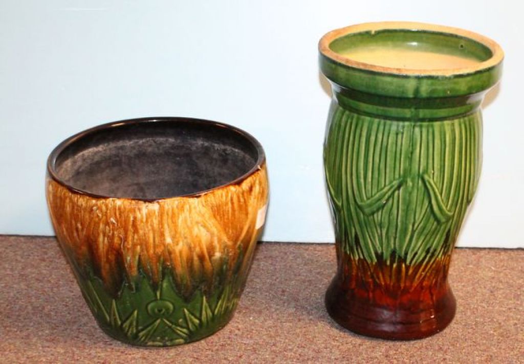 21927 Antique Majolica Planter & Stand Planter 11" dia.; Stand 14" h.