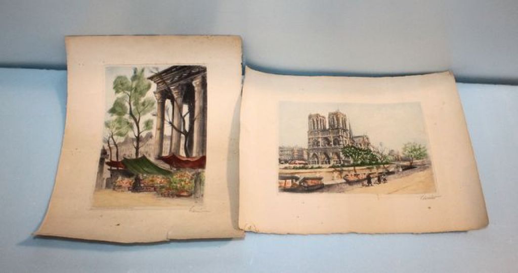 Print of Paris Le Marche & Notre Dame 10" h., 13" w. Print of Paris Le Marche & Notre Dame 10" h., 13" w.