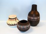Three Mexican Pottery Vases One signed Gallian, two sandstone creations; 12" h., 6" h., 5 1/2" h. Three Mexican Pottery Vases One signed Gallian, two sandstone creations; 12" h., 6" h., 5 1/2" h.