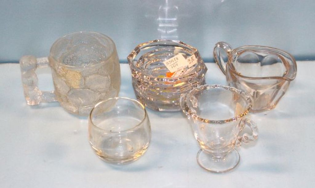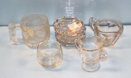 Four Glass Dishes, Creamer, Sugar, Two Glasses Dishes, 3" Four Glass Dishes, Creamer, Sugar, Two Glasses Dishes, 3"