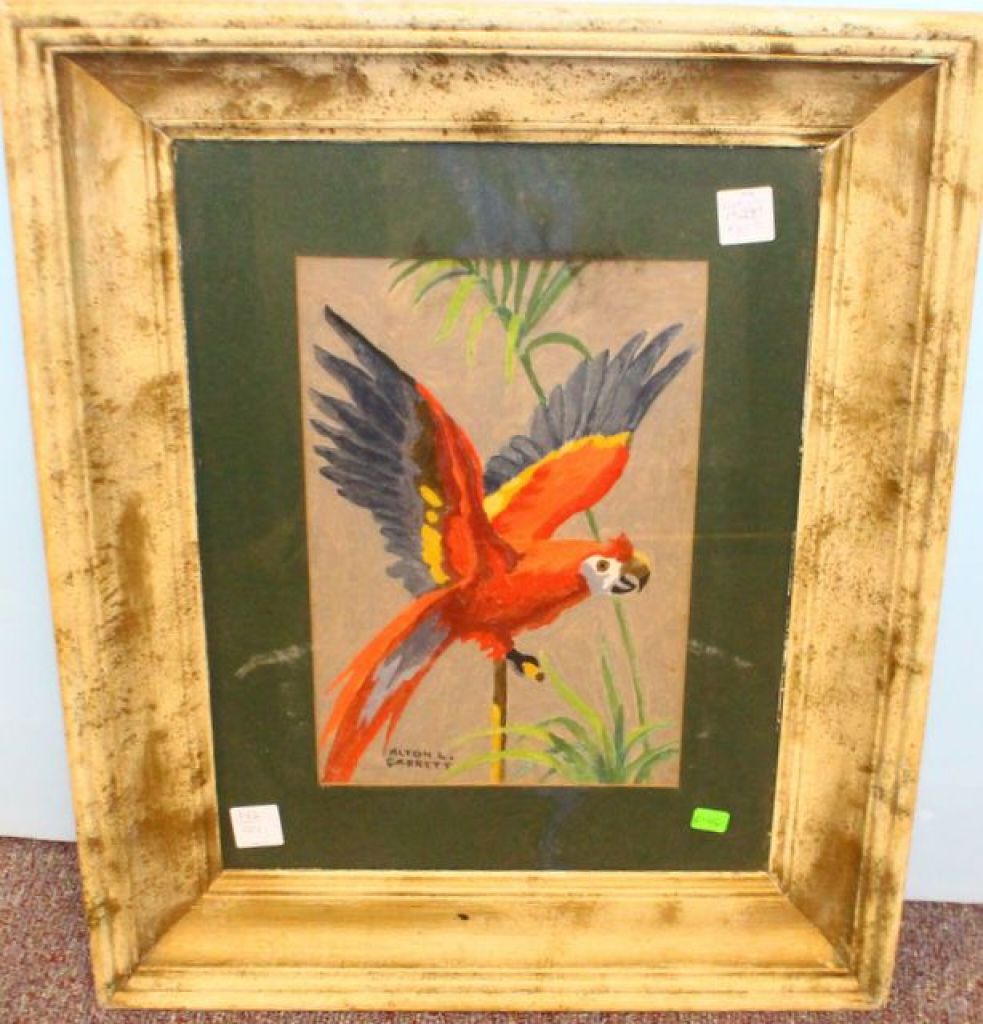 Watercolor of Parrot Signed Alton L. Garrett 17" w., 21" h. Watercolor of Parrot Signed Alton L. Garrett 17" w., 21" h.