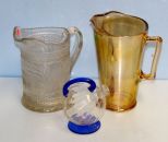 22092 Two Large Glass Water Pitchers, Small Glass Pitcher