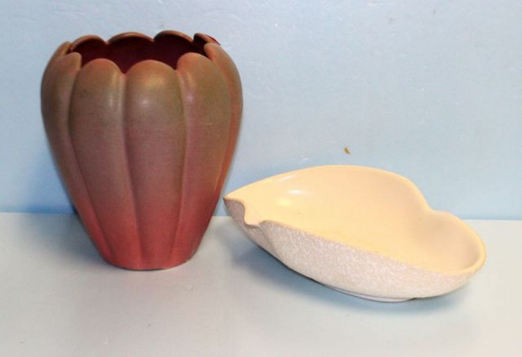Niloak Pink Vase 9"h., California Pottery Dish Niloak Pink Vase 9"h., California Pottery Dish