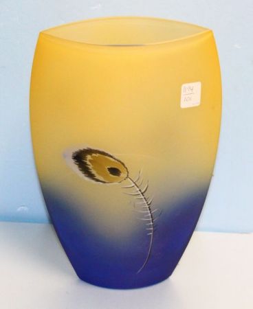 22112 Art Glass Vase, and Feather Decorated 12"h.