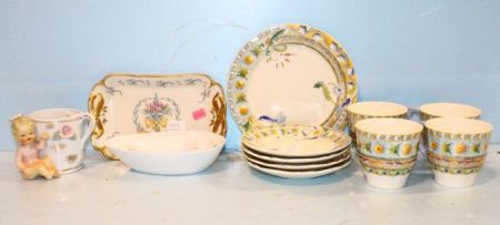 22120 Four Porcelain Cups and Saucers (Guien Raphael) Salad Plate, Cupi Cup, Concorde China Tray, Three Porcelain Sauces Trays