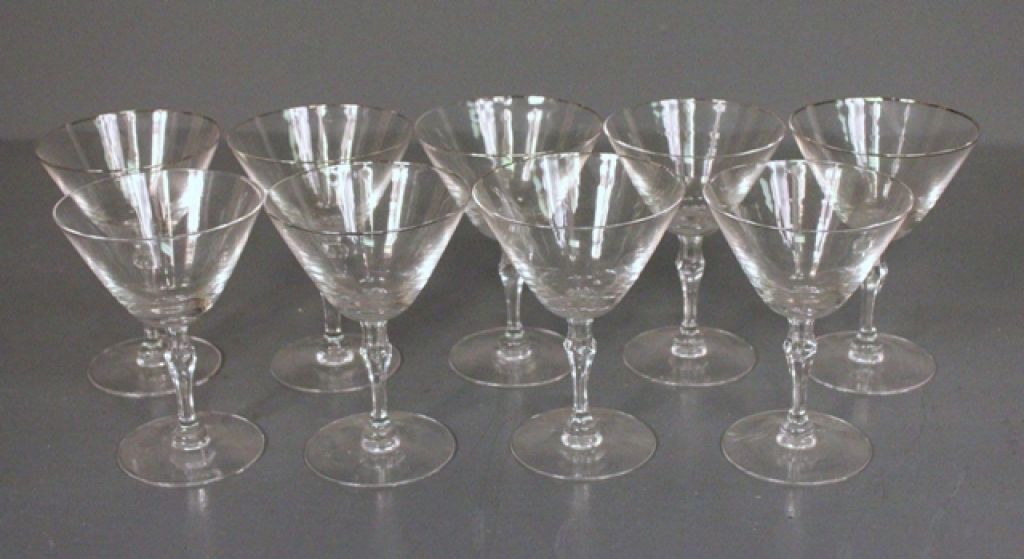 22156 Set of Nine Clear Champagne Stemware Description: Set of Nine Clear Champagne Stemware; 6" h.