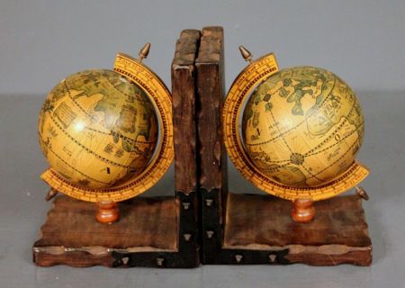 Vintage Globe Bookends Description: Vintage Globe Bookends; 8" h, 6" w. Vintage Globe Bookends Description: Vintage Globe Bookends; 8" h, 6" w.