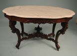 Rosewood Marble Top Center Table in the Rococo Style, stretcher with urn. 28"h 49"w 31"d Rosewood Marble Top Center Table in the Rococo Style, stretcher with urn. 28"h 49"w 31"d