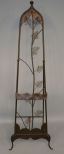 Bronze finish metal easel with decorative leaf design. W. 16", h. 59" Bronze finish metal easel with decorative leaf design. W. 16", h. 59"