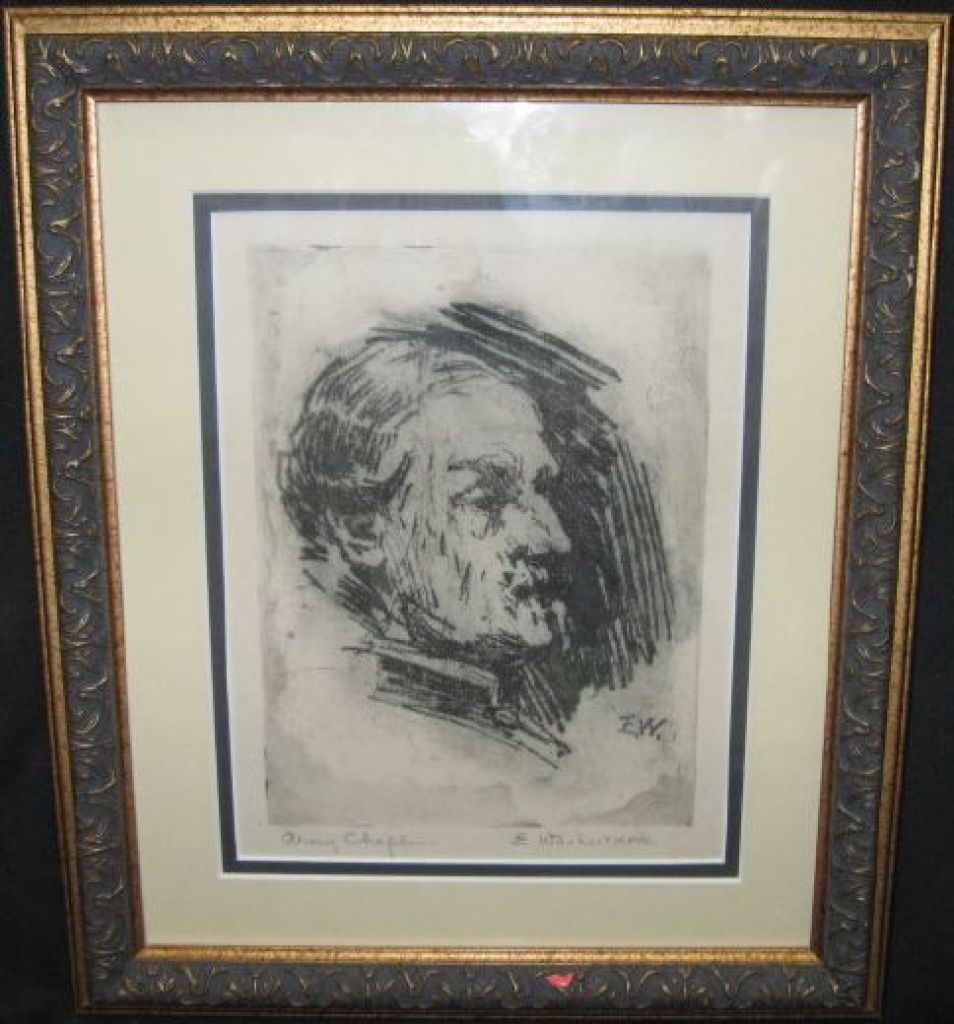 Ellsworth Woodward "Army Chaplain" etching, (American/New Orleans, 1861-1939) sight 9" x 7", litho-monogrammed lower right "E.W., pencil titled lower left, pencil signed lower right "E. Woodward". Glazed, matted and presented in a carved giltwood frame. Ellsworth Woodward "Army Chaplain" etching, (American/New Orleans, 1861-1939) sight 9" x 7", litho-monogrammed lower right "E.W., pencil titled lower left, pencil signed lower right "E. Woodward". Glazed, matted and presented in a carved giltwood frame.