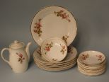 Seventeen Piece Set of China, dinner plates marked "W", made in Poland, bread plates marked Moss Rose by Sango and tea pot marked Royal Sedly. Seventeen Piece Set of China, dinner plates marked "W", made in Poland, bread plates marked Moss Rose by Sango and tea pot marked Royal Sedly.