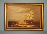 Oil Painting of Clipper Ship, 31"h 43"w. Oil Painting of Clipper Ship, 31"h 43"w.