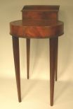 Usual Flame Mahogany Side Table with compartment and original leather top. W. 14-1/4", d. 18", h. 26" Usual Flame Mahogany Side Table with compartment and original leather top. W. 14-1/4", d. 18", h. 26"
