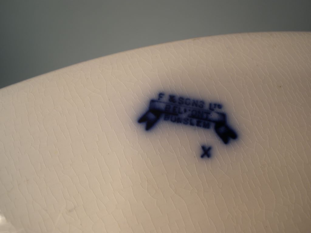 Flow Blue Platter, 14" h, 19" w. Flow Blue Platter, 14" h, 19" w.