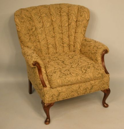 Nice Upholstered Chair, first quarter 20th Century, in Queen Anne Design with original fabric. w. 32", d. 24", h. 36" Nice Upholstered Chair, first quarter 20th Century, in Queen Anne Design with original fabric. w. 32", d. 24", h. 36"