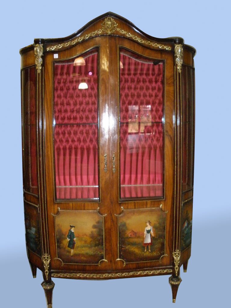 22878 French Curio Bronze Mounted Hand Painted China Cab