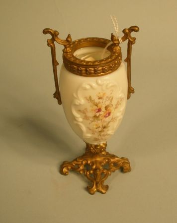 C. F. Monroe Gilt-Brass-Mounted Wave Crest Opal Glass Cabinet Vase, fourth quarter 19th century, oviform with a pierced rococo base of gilded brass, h. 6" and 7-1/2". For similar vases, see Wilfred R. Cohen, Wave Crest, The Glass of C. F. Monroe, Collect C. F. Monroe Gilt-Brass-Mounted Wave Crest Opal Glass Cabinet Vase, fourth quarter 19th century, oviform with a pierced rococo base of gilded brass, h. 6" and 7-1/2". For similar vases, see Wilfred R. Cohen, Wave Crest, The Glass of C. F. Monroe, Collect