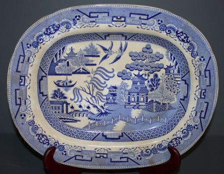 Hard to find in this condition antique blue willow platter, 18"w. Hard to find in this condition antique blue willow platter, 18"w.