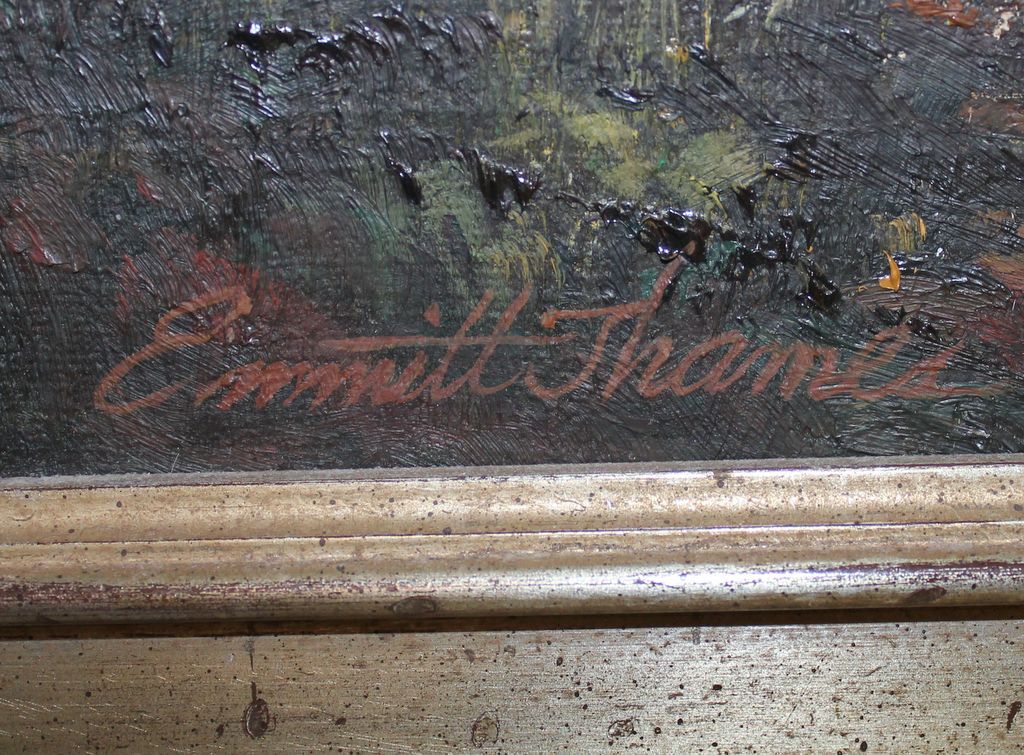 Beautiful lake scene painting on canvas by Mississippi artist, signed lower left; 19 1/4" w., 23" h. Beautiful lake scene painting on canvas by Mississippi artist, signed lower left; 19 1/4" w., 23" h.