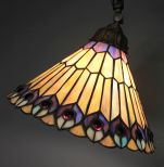 Metal Bronze Finished floor lamp with feather design stain glass shade., 62"h. Metal Bronze Finished floor lamp with feather design stain glass shade., 62"h.