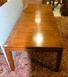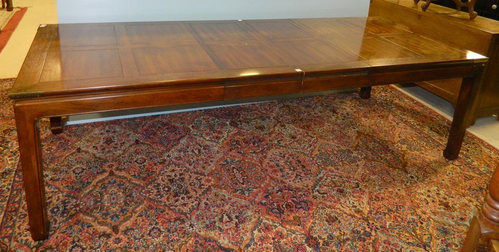 Chinese Chippendale style contemporary dining table with two leaves, brass accent corners, 68"w., 40"d., 29"h. Chinese Chippendale style contemporary dining table with two leaves, brass accent corners, 68"w., 40"d., 29"h.