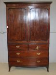 Mahogany linen press with two doors, four drawers supported by splay feet, 48"w., 24"d., 80"h Mahogany linen press with two doors, four drawers supported by splay feet, 48"w., 24"d., 80"h