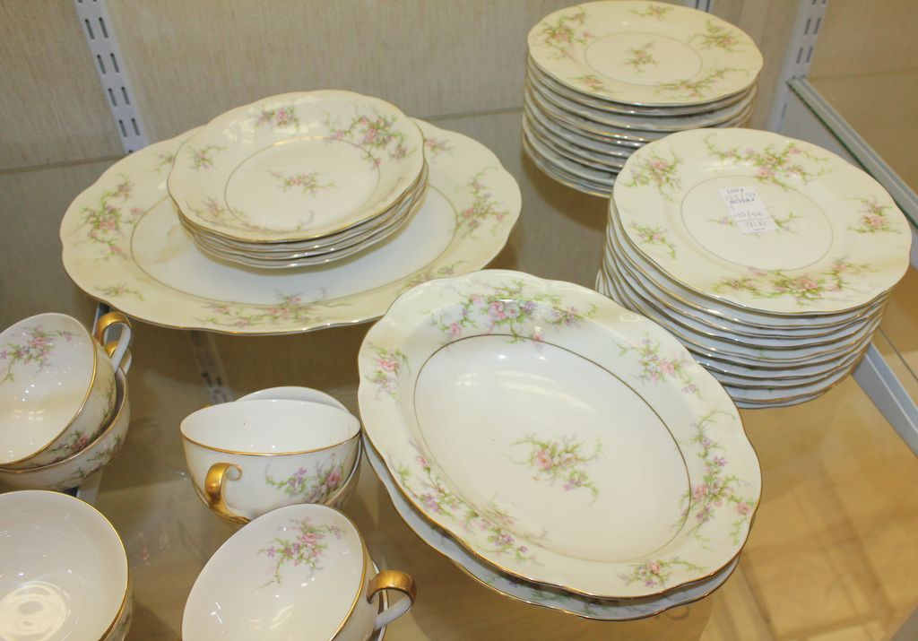 Set of Haviland china consisting of twelve dinner plates, twenty salad plates, four cereal bowls, two vegetables, covered vegetable, serving bowl, platter, twelve cups 54 total pieces. Set of Haviland china consisting of twelve dinner plates, twenty salad plates, four cereal bowls, two vegetables, covered vegetable, serving bowl, platter, twelve cups 54 total pieces.