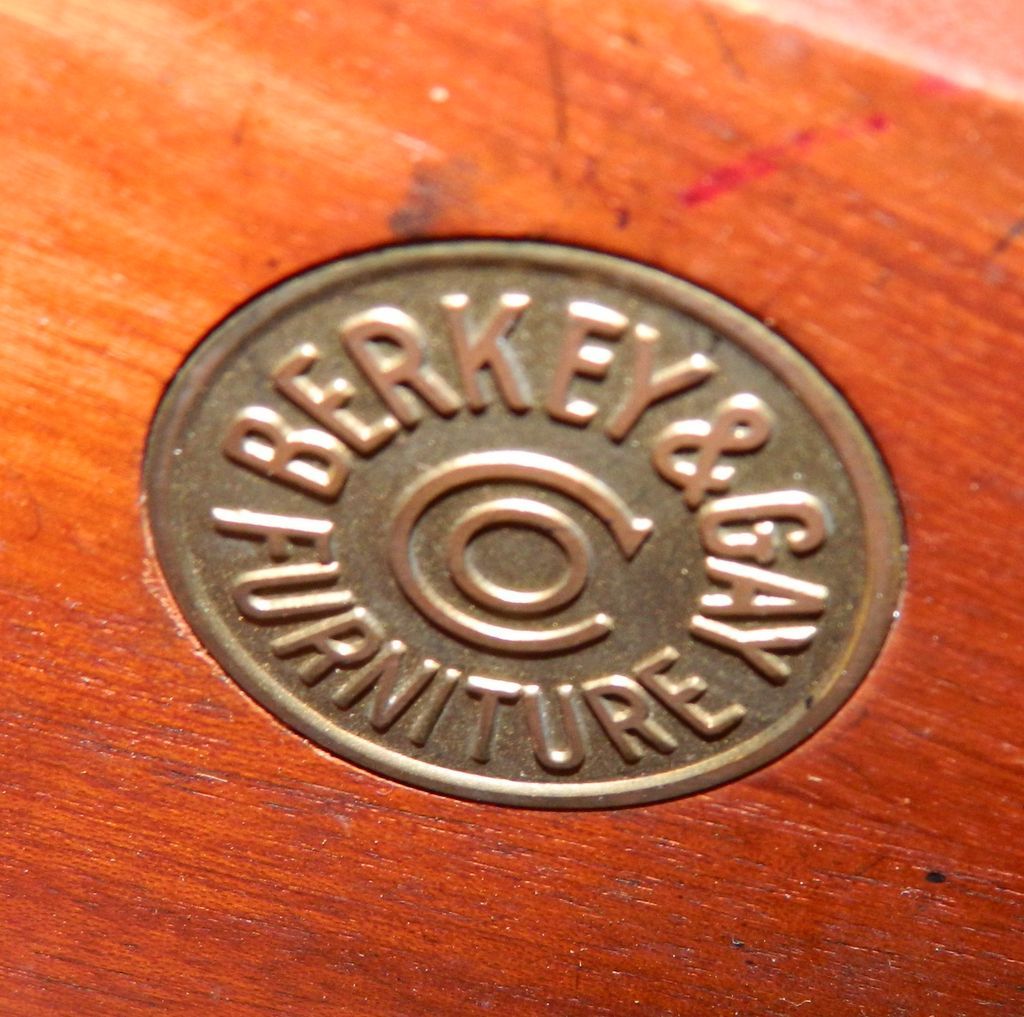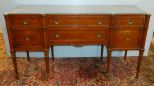 Labeled Berkey and Gay Sheraton style sideboard with glass top, four drawers, two doors; 68" w., 21" d., 37" h. Labeled Berkey and Gay Sheraton style sideboard with glass top, four drawers, two doors; 68" w., 21" d., 37" h.