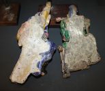 Antique Chinese roof tiles of warriors on stands, 6"w., 15"h. Antique Chinese roof tiles of warriors on stands, 6"w., 15"h.