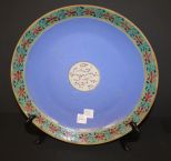 Large pottery hand painted charger with inscription in center, 13"dia. Large pottery hand painted charger with inscription in center, 13"dia.