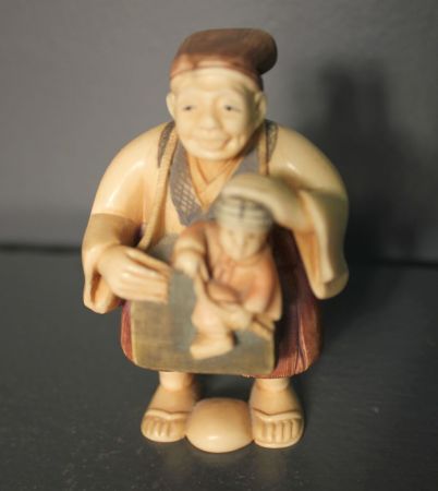 Antique polychrome ivory figurine of man and young boy, 3"h. Antique polychrome ivory figurine of man and young boy, 3"h.