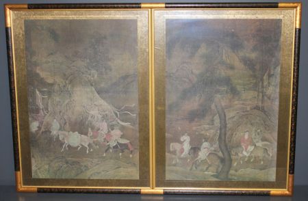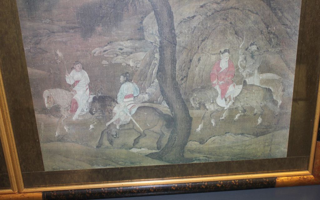 Large reproduction of early painting entitled "The tribute horse", 50"w., 33"h. Large reproduction of early painting entitled "The tribute horse", 50"w., 33"h.