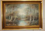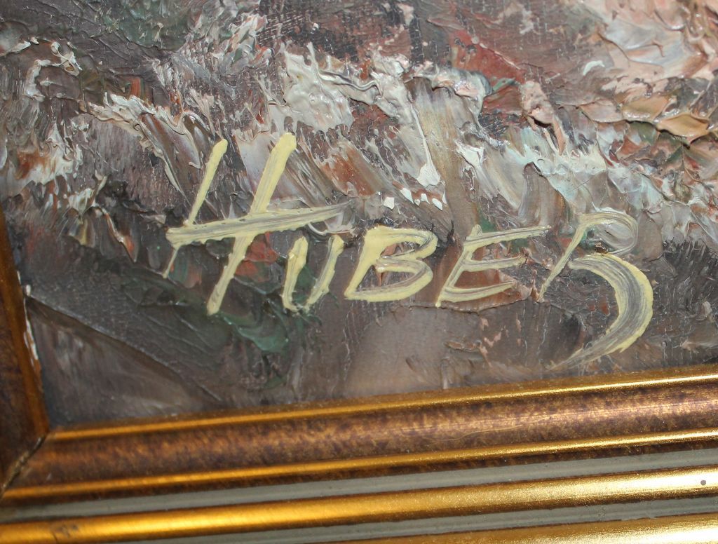 Oil on canvas of landscape signed Haber, 43"w., 30"h. Oil on canvas of landscape signed Haber, 43"w., 30"h.