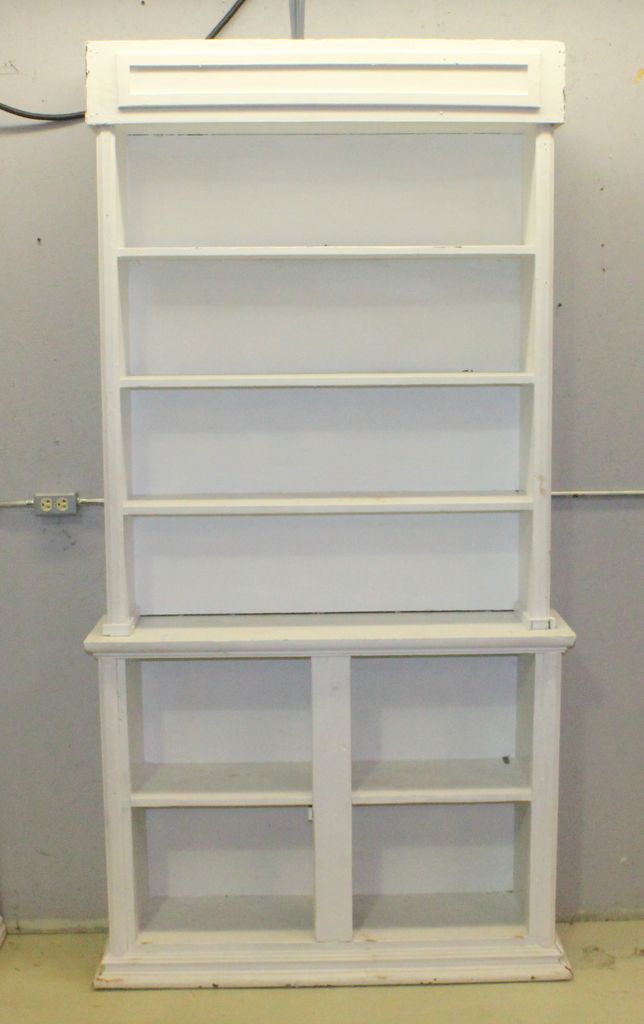 Painted display or bookcase cabinet with five shelves, 44"w., 12"d., 86"h. Painted display or bookcase cabinet with five shelves, 44"w., 12"d., 86"h.